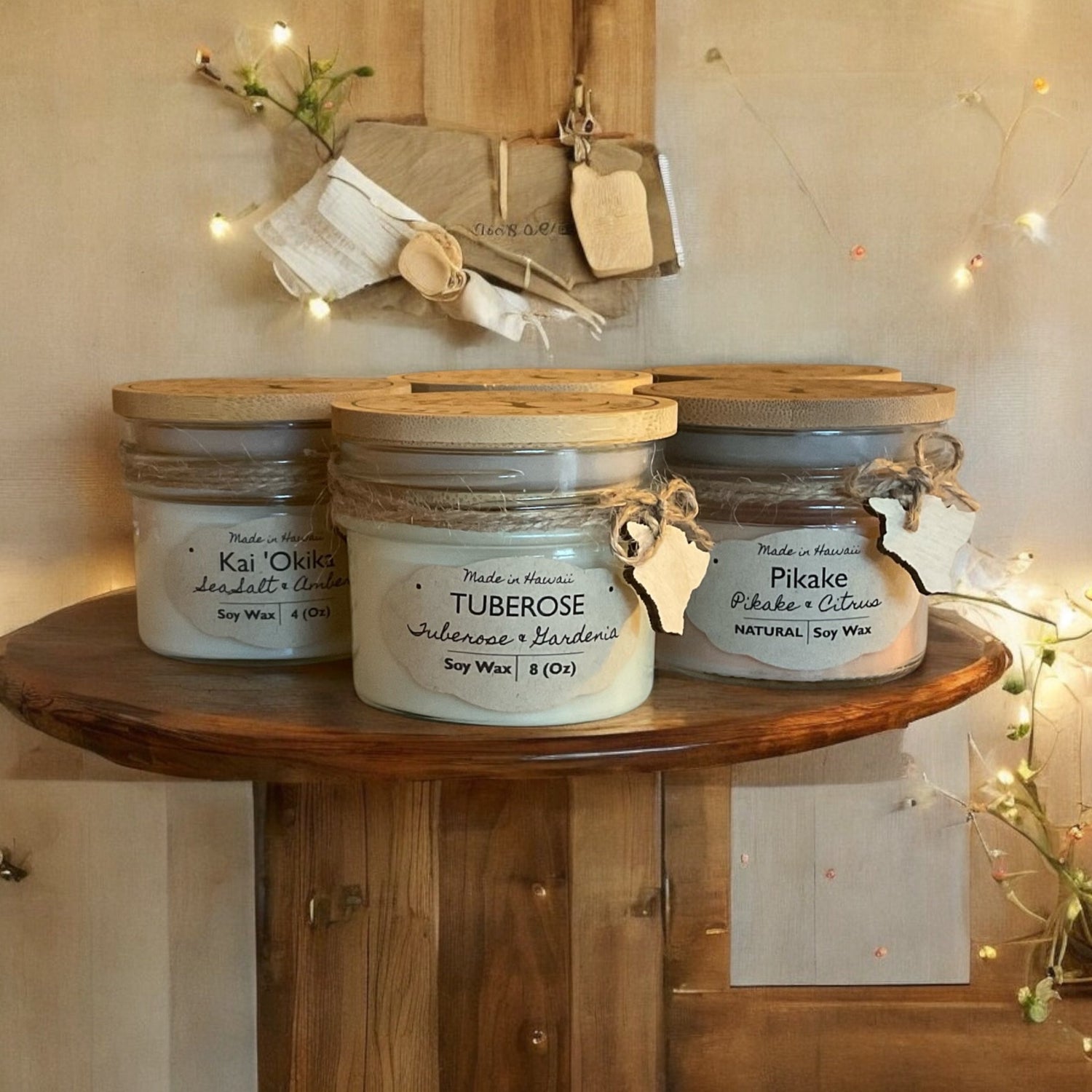 The 4oz mason jar candles with bamboo lids give this simple design...