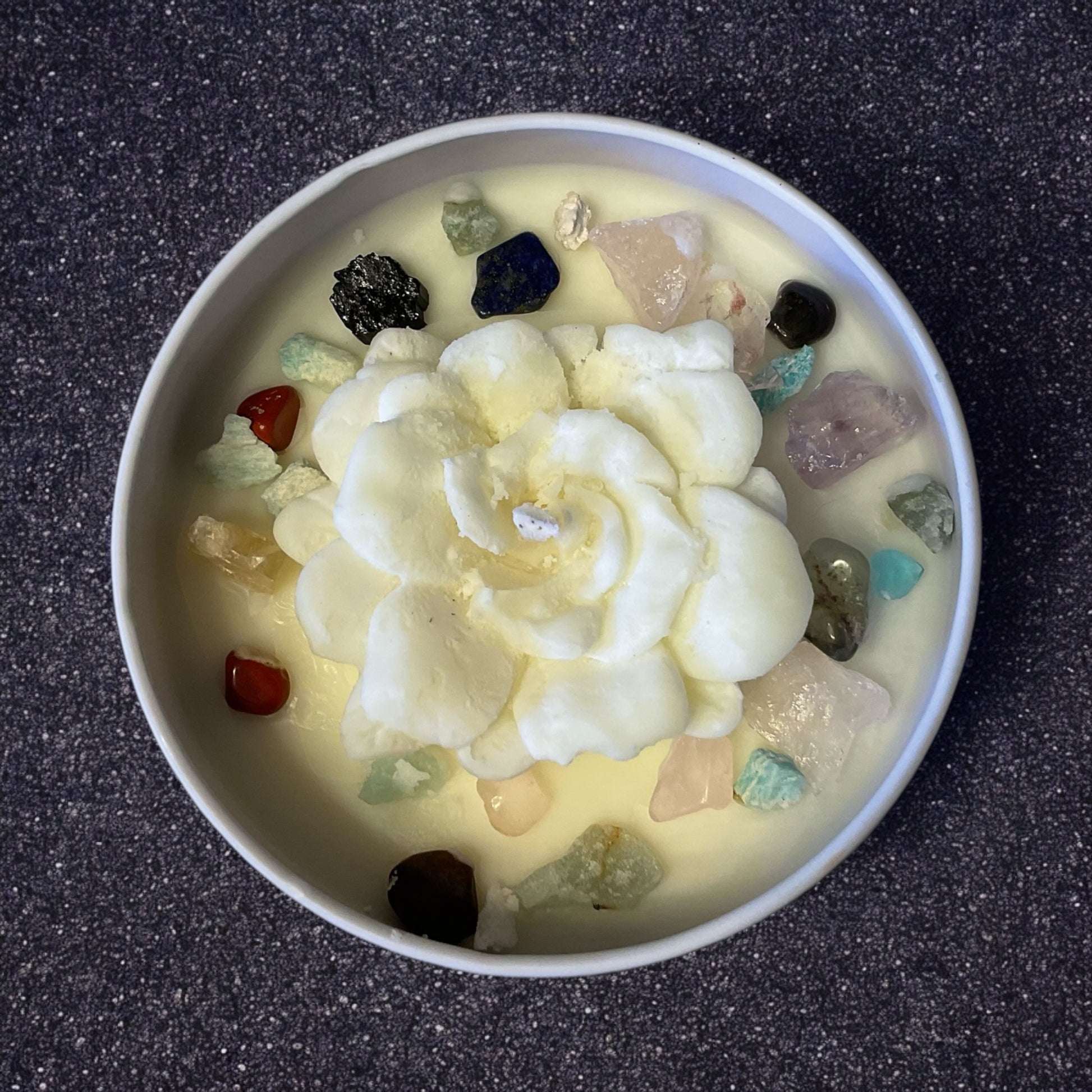 The Pisces zodiac candle is hand crafted with intention. The bright aquamarine gemstone at its core conveys stability, strength and wisdom. The chakra crystals are hand-picked and selected for the people falling under the sign of Pisces. The aroma that embodies the gentle soul of Pisces has accords of tropical florals such as jasmine and gardenia.